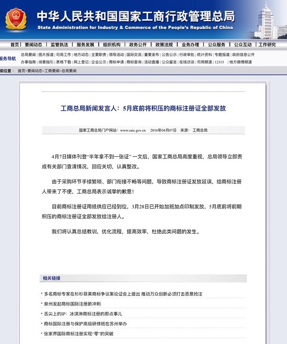 由于采购环节手续繁琐、部门衔接不畅等问题,导致商标注册证发放延误,给商标注册人带来了不便,工商总局表示诚挚的歉意!