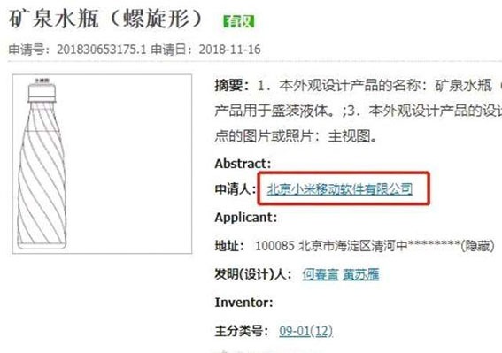 近期有消息称,小米申请了矿泉水外观专利,难道小米还想要进军矿泉水行业吗?