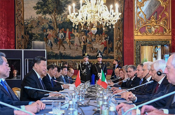 2019年3月21日,习近平主席对意大利进行国事访问。访意期间,习近平主席同马塔雷拉总统和孔特总理举行会谈。