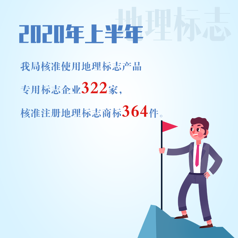 2020年上半年,我局核准使用地理标志产品专用标志企业322家,核准注册地理标志商标364件。截至2020年6月底,累计批准地理标志产品2385个,核准专用标志使用企业8811家,累计注册地理标志商标5682件。