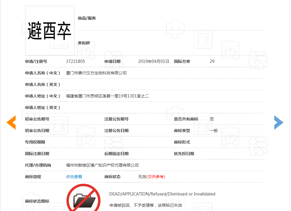 据了解,“避酉卒”、“避月半”二个商标,均已被无效。