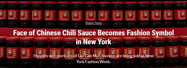 近日,在2019春夏纽约时装周“中国日”推广活动中,“老干妈”卫衣惊艳亮相,吸引了众多人的眼球。这件百搭款的连帽短卫衣,以“老干妈”标志性的红色为底色,胸口的标签是风靡全球的“老干妈”标识。一向以征服人味蕾著称的“老干妈”,此次无疑也向国际“秀”了一把自己的“颜值”,展示了一种“土味”时尚。