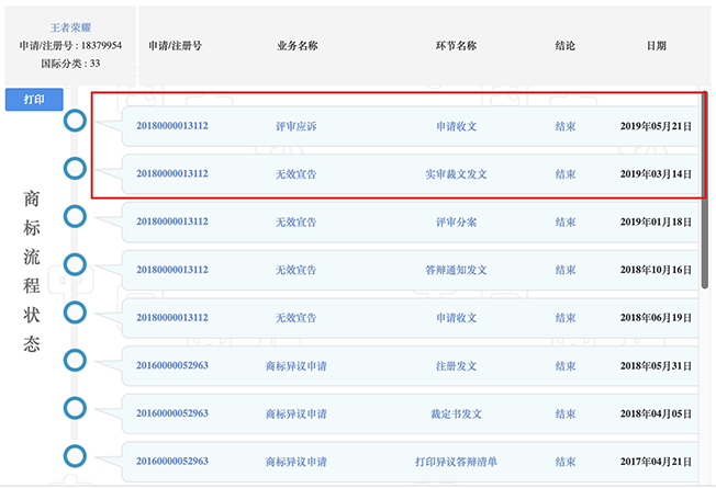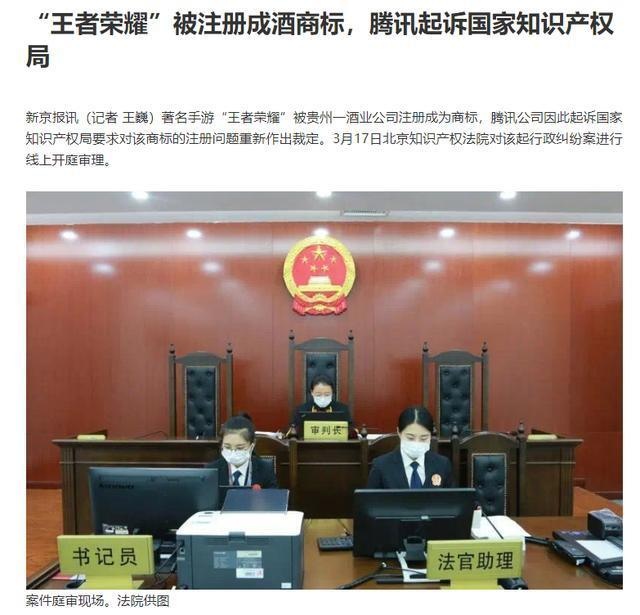 2018年6月19日,腾讯科技(深圳)有限公司对贵州问渠成裕酒业有限公司注册的“王者荣耀”商标提出无效宣告请求,国家知识产权局以第18379954号“王者荣耀”商标与引证商标未构成类似商品上的近似商标,诉争商标的注册未侵犯腾讯公司的著作权亦未构成《中华人民共和国商标法》第四十四条第一款规定的情形为由,裁定诉争商标予以维持。